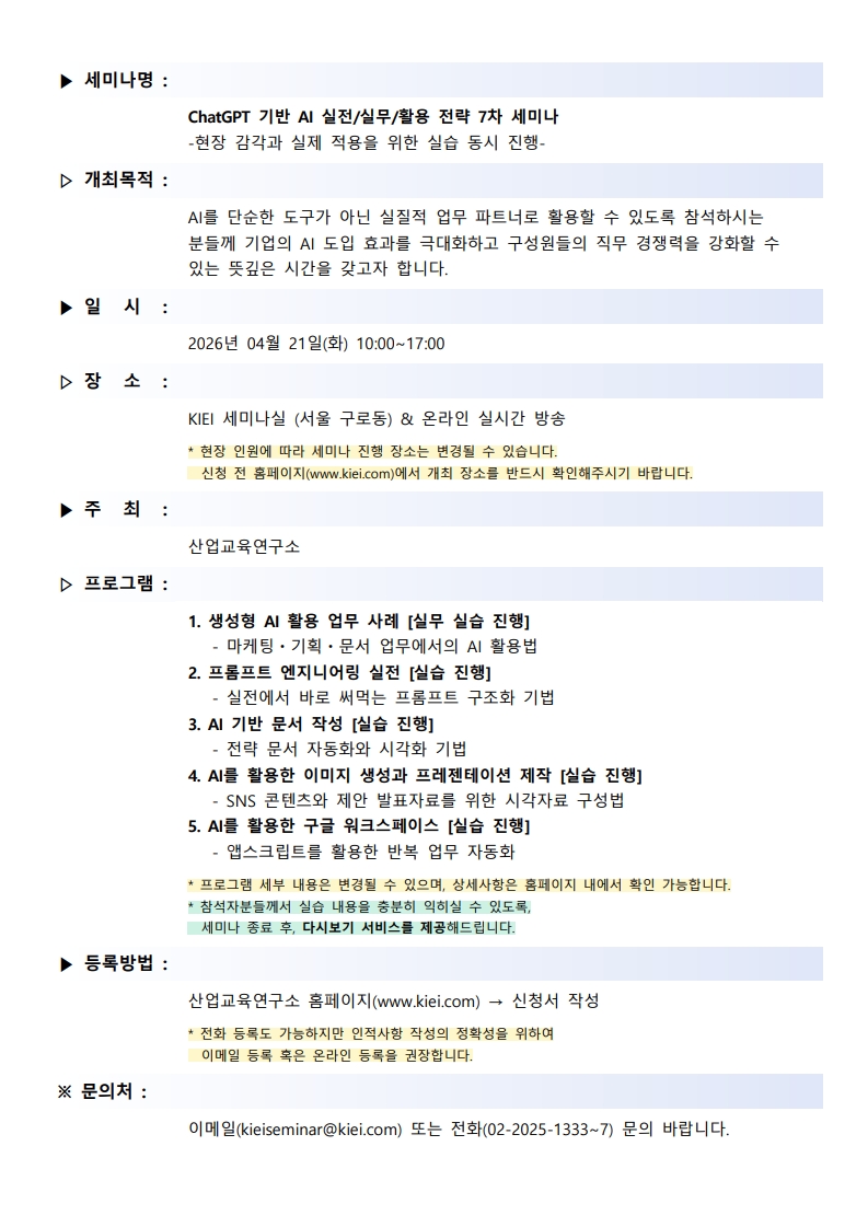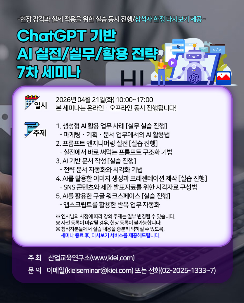 [산업교육연구소] ChatGPT 기반 AI 실전/실무/활용 전략 7차 세미나