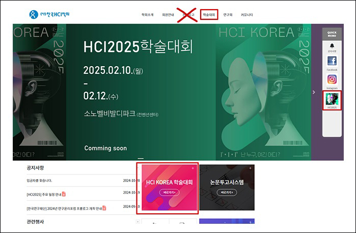 HCI KOREA 2025 학술대회와 관련된 사항은 학술대회 홈페이지에 공지합니다.
